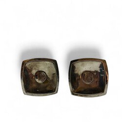 | Omschrijving | Paar zilveren kandelaren op vierkante voet, 1e gehalte. |