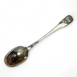 | Omschrijving | Zilveren brijlepel, onder meer met schelpornament versierd. Andele Andels, Leeuwarden, 1734. |