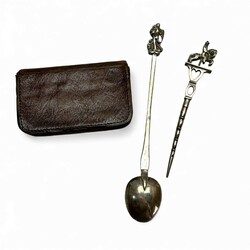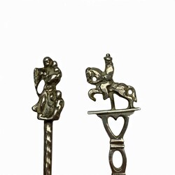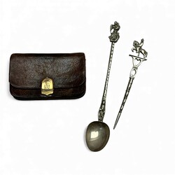 | Omschrijving | Lot divers: een antiek lederen beursje met 14 karaats (585/1000) geelgouden sluiting, een tweede gehalte (835/1000) zilveren lepeltje, bekroond met Caritas en een zilveren pijpenwroeter, bekroond met een ruiter te paard |