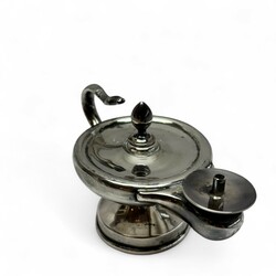 | Omschrijving | Een Engels eerste gehalte (925/1000) zilveren olielampje/ aansteker handvat in de vorm van een slang. Mr teken JB voor Joseph Breham, Londen . Jaarletter onduidelijk. ca 1900. |
