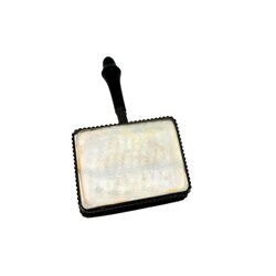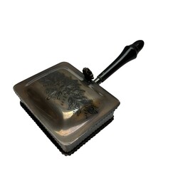 | Omschrijving | Een 20e eeuws tweede gehalte (835/1000) zilveren asbakleger of ‘silent butler’. Gegraveerde deksel, versierd met parelrand en ebbenhouten greep. Gemerkt ‘835’. |