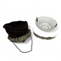 | Kavel | 1238. Zilveren tasbeugel 1916 en kristallen schaaltje met zilveren beugel |