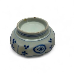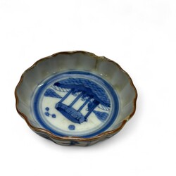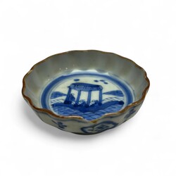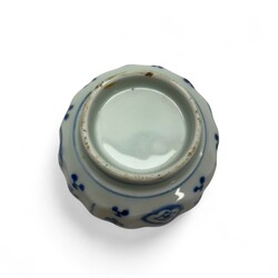 | Omschrijving | Een antiek 17e eeuws Chinees porseleinen schaaltje, bloemvormig model, met onderglazuur blauw decor. |