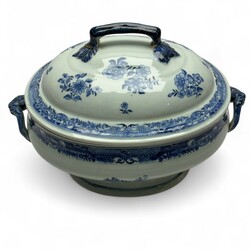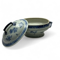 | Omschrijving | Een antieke 18e eeuwse Chinees porseleinen terrine, Qianlong periode (1735-1796), met onderglazuur blauw floraal decor |