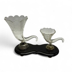 | Omschrijving | Een antiek 19e eeuws rookstel, twee kristallen hoorn des overvloeden, zilveren montuur en houten basement. |