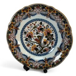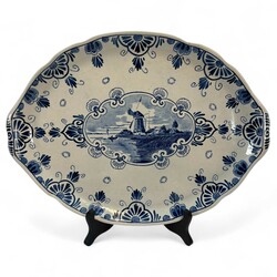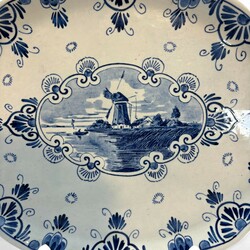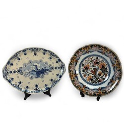 | Omschrijving | Een 20e eeuws polychroom gedecoreerd aardewerken sierbord, floraal decor met centraal een afbeelding van een vogel. Aan de achterzijde gemerkt Tichelaar, Makkum. Met daarbij een 20e eeuws aardewerken dienblad met voorstelling van een molen in medaillon. Aan de achterzijde gemerkt plateelbakkerij Zuid-Holland & ‘Erven Lucas Bols Anno 1575 Amsterdam Holland. |