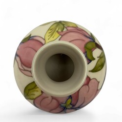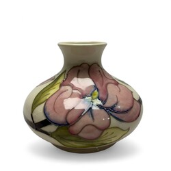 | Omschrijving | Aardewerk vaasje met polychroom reliëfdecor van hibiscusbloemen, gemerkt en uitvoering Moorcroft, Engeland, met monogram ‘WM’ verwijzend naar William (1872–1945) of Walter Moorcroft (1917-2002) |