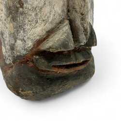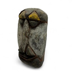 | Omschrijving | Een 20e eeuws lichthouten Abelammasker, Papua Nieuw Guinea, vermoedelijk Maprik-Gebied. Gedecoreerd met gele, rode en witte pigmenten. |