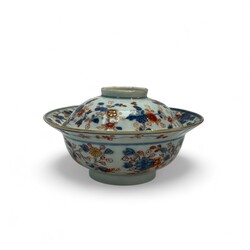 | Omschrijving | Chinees Imari porseleinen bedekte kom met florale motieven, 18e eeuw |