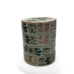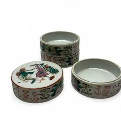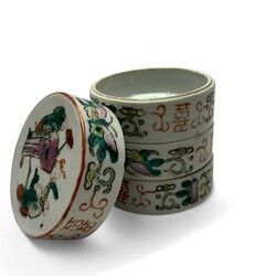| Kavel | 1643. Chinees porseleinen dekselpot, en vierlaagse stapeldoos |