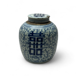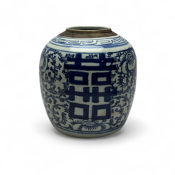 | Conditie | Vaas: hals gechipt, standvlak met driepotige haarlijn. Gemberpotten: deksel past niet helemaal, en is gechipt, beide standringen van de gemberpotten met chips |