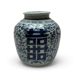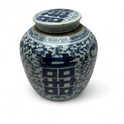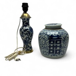 | Omschrijving | Lot van twee stuks Chinees porselein: Een antieke 19e eeuwse Chinees porseleinen gemberpot met deksel en een 19e eeuwse balustervormige vaas, vermaakt tot lampenvoet |