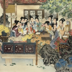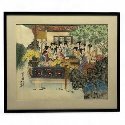 | Omschrijving | Een 20e eeuwse Chinese aquarel, voorstelling van twaalf vrouwen op een terras. Gemerkt met karaktertekens. |