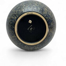 | Omschrijving | Een 20e eeuwse keramieken vaas, bolvormig model, met gespikkeld glazuur. Ontwerp & uitvoering Dirk Romijn, 1985. Aan de onderzijde gesigneerd. |