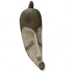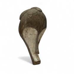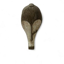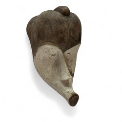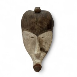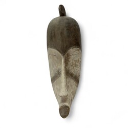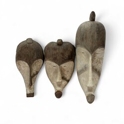 | Omschrijving | Lot van drie 20e eeuwse Afrikaanse uit hout gestoken maskers, versierd met witte pigmenten. Fang, Gabon. |