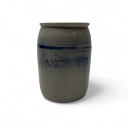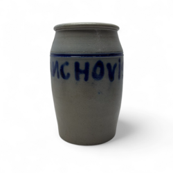 | Omschrijving | Lot van drie 19e eeuwse Keuls aardewerken potjes met opschrift 'Ansovis', 'Anschovis' en 'Angovis'. |