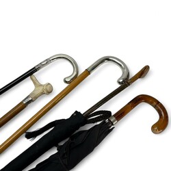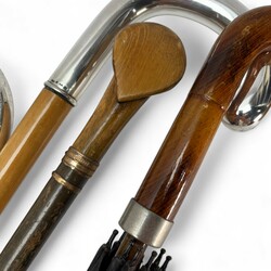 | Kavel | 1207. Drie wandelstokken en twee paraplu's. Twee met zilveren heften. |
