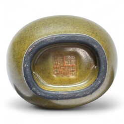 | Omschrijving | Een Chinees steengoed twee oren vaasje met groene thee glazuur. Voorzien van een bodemmerk. 20e eeuws of ouder. |