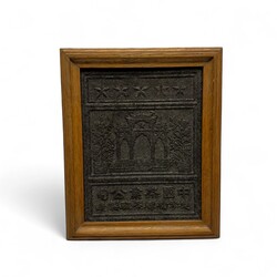 | Omschrijving | Een Chinese theetegel in lijst, met afbeelding van een tempel, teksten en vijf sterren |