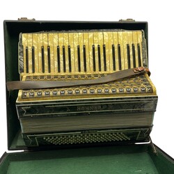 | Omschrijving | Een Hohner accordion met 41 toetsen en 120 knoppen. In koffer. |