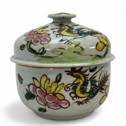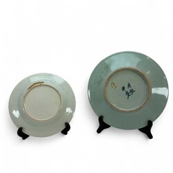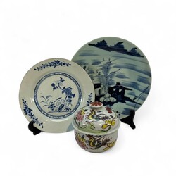 | Omschrijving | Een lot van drie stuks Oosters porselein. Bestaande uit een 18e en een 19e eeuws Chinees porsleinen schotel, een Japanse vroeg 20e eeuwse dekselpot met polychroom floraal en vogel decor. |