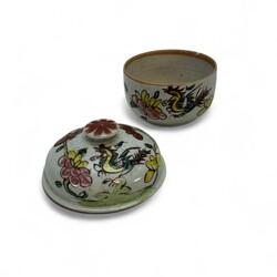 | Conditie | Kleinste schotel met randchip. Dekselpot gelijmd. |