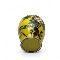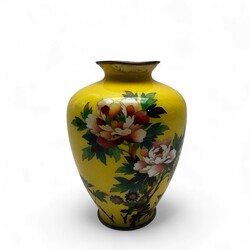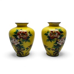| Omschrijving | Een passend spiegelend paar Meiji periode Japanse cloisoné balustervazen. Met een zeer fijn floraal decor op een gele fond. Ca 1900. |