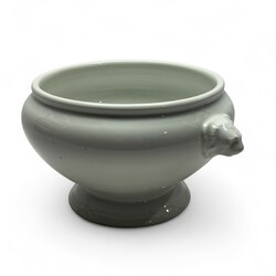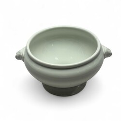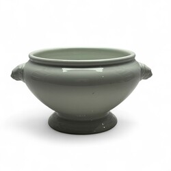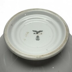 | Omschrijving | Een jaren 40 Duits porseleinen soepterrine zonder deksel, 18 cm hoog en 34 cm doorsnede. Met leeuwen maskerons aan weerzijde. Onderkant gemerkt voor de Duitse Luftwaffe 1942. Fabrikant Bavaria Germany. Gevonden in Friesland, dus zeer waarschijnlijk van de luchtmachtbasis Leeuwarden. |