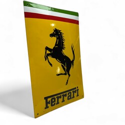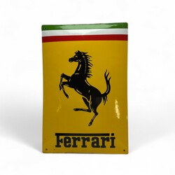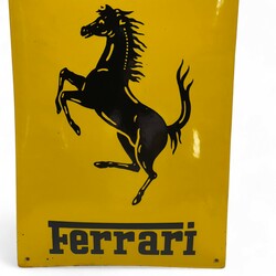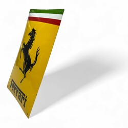 | Omschrijving | Een 20e eeuws geëmailleerd bord met het logo van Ferrari |
