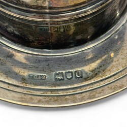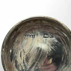 | Omschrijving | Een antiek Engels eerste gehalte (925/1000) zilveren montuur voor een inktpot. Mr. JG&S = John Grinsell & Sons, Londen, jaarletter C (1898). Tevens gemerkt met Nederlands ZI importkeur. |