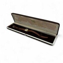 | Omschrijving | Een 14 karaats (585/1000) geelgouden dameshorloge, Pontiac, jaren '50, op lederen band |