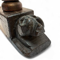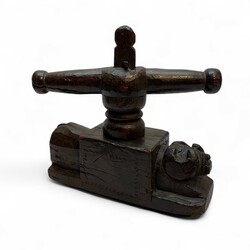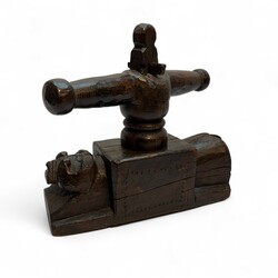 | Omschrijving | Houten kaaspers, bedoeld voor geiten- of schapenkaas, gestoken in de vorm van een schaap met hoorns, vermoedelijk 18e eeuw |