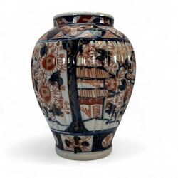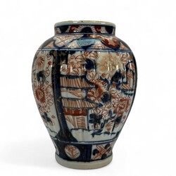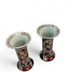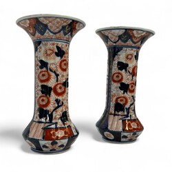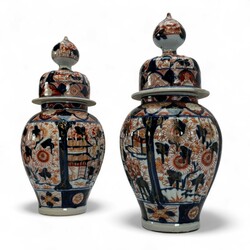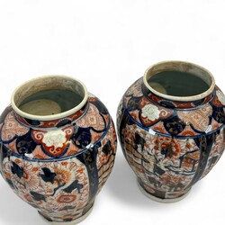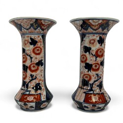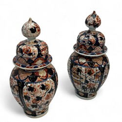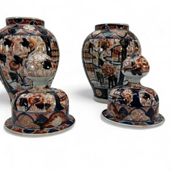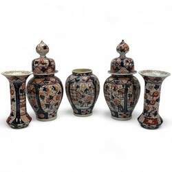 | Omschrijving | Vijfdelig Japans Imari porseleinen kaststel, bestaande uit: drie dekselvazen -één deksel ontbreekt-, en twee bekervazen, 20e eeuw |