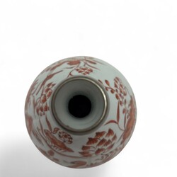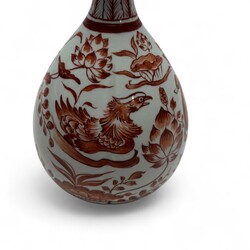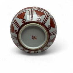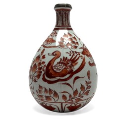 | Omschrijving | Japans porseleinen vaasje met rood gedecoreerd: vogels in een vijver gevuld met bloeiende lelies, 20e eeuw |