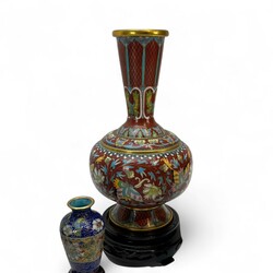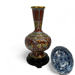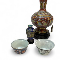 | Omschrijving | Lot Aziatica, waaronder: paar cloisonné vaasjes met vlinderdecor, 20e eeuw, op basementen, paar snuifflesjes, opiumgewichtjes, en divers Chinees porselein |