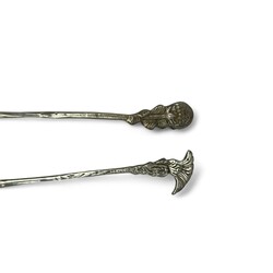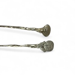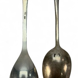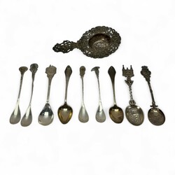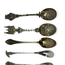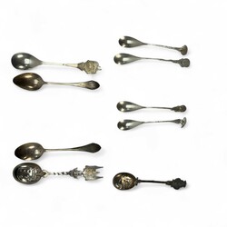 | Omschrijving | Lot divers 20e eeuwse tweede gehalte (835/1000) Nederlands zilveren schepwerk, waaronder een theezeefje met landschapsdecors, twee tweelepels met waaiervormige steel, mr. Van Kempen, vier theelepels met bloemdecor, één met bekroning van Zuivelschool Bolsward, één met Waterpoort en het wapen van Sneek in de bak, één met het wapen van Opsterland. |