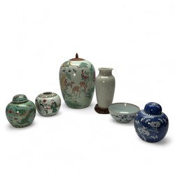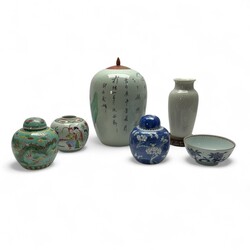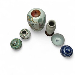 | Omschrijving | Lot divers Chinees porselein, waaronder diverse gemberpotten, een 18e eeuwse kom en een vaas met craquele |