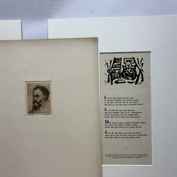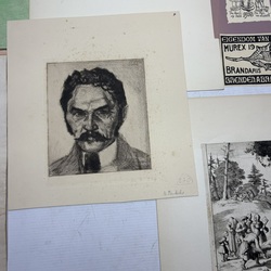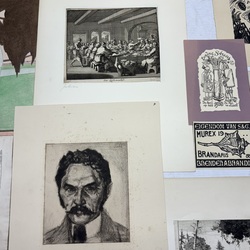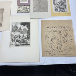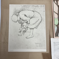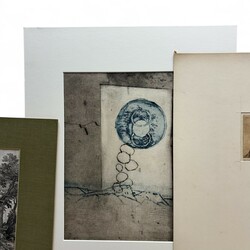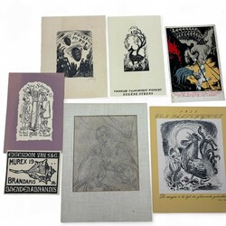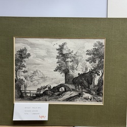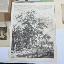 | Omschrijving | Lot diverse grafiek, waaronder een gedicht, oplage van 50 stuks, door Ruurd Elzer (Sneek 1915- Groningen 1995), voor antiquariaat Academia, een kleurenets, vermoedelijk Jan Montyn, titel 'Berge du Mekong', een ets op papier, 'la Précaution', door Armand Rassenfosse (1862-1934), ets, portret van W. Bitter door Dirk Harting (1884-1970), ets 'Rhenen' door Hendrikus Elias Roodenburg (Den Haag 1895 - Wassenaar 1987), enkele stukjes grafiek in opdracht voor Eugene Strens, twee 17e eeuwse etsen, 'Begraven der Laplanders & 'Een liefdemaaltijd' door Jan Luyken, en een 17e eeuwse ets door Paul Bril. |