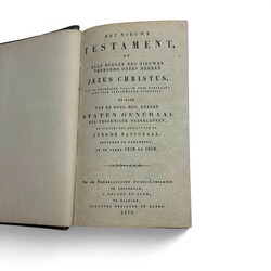 | Conditie | Flapje bijbel beschadigd, één deksel gedeukt |