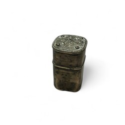 | Conditie | Pillendoosje gedeukt, lodereindoosje breuk onderkant |