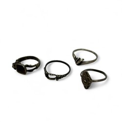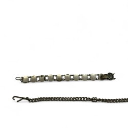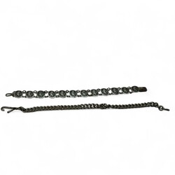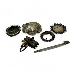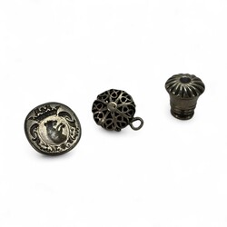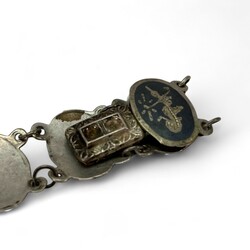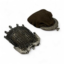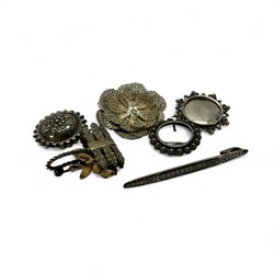 | Omschrijving | Lot diverse zilveren en verzilverde sieraden, waaronder een gehamerde Amsterdamse School broche met bloedkoraal (speld gebroken), een Siam Niello armbandje, een alpacca beursbeugeltje en een tweede gehalte (835/1000) zilveren beursbeugeltje aan maliënkoldertasje, twee zilveren vingerhoedjes en een 18e eeuwse zilveren lakstempel, staafje gebroken |