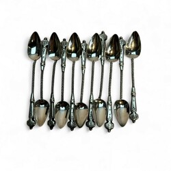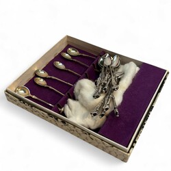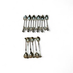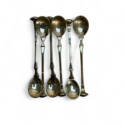 | Omschrijving | Lot diverse tweede gehalte (835/1000) Nederlands zilveren lepeltjes: een set van zes mokkalepeltjes, mr. Edelmetaalindustrie Sneek, werkzaam vanaf 1972. Met daarbij elf advocaatlepeltjes, mr. Christiaan Jacobs Brunings, werkzaam 1849 tot 1902. |