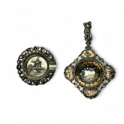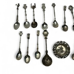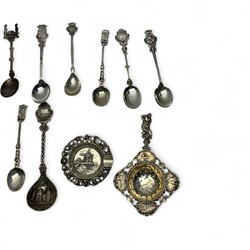 | Omschrijving | Lot zilver: elf tweede gehalte (835/1000) zilveren theelepels, suikerschep, asbakje en theezeefje. De meeste lepels bekroond met een stadswapen. Diverse meesterstekens en leeftijden. |