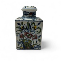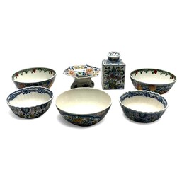 | Omschrijving | Lot van zeven stuks Tichelaar, Makkum aardewerk. Bestaand uit een theebus met dop, een kwispedoor en vijf kastkommen. Alles gemerkt. |
