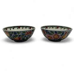 | Afmetingen | Grootste kommen 8 cm hoog x 17 cm doorsnede. Theebus 16 cm hoog en kwispedoor 10 cm hoog. |