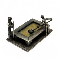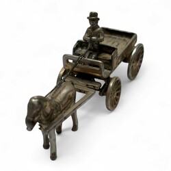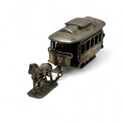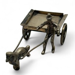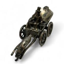 | Omschrijving | Lot diverse 20e eeuwse tweede gehalte (835/1000) zilveren miniaturen, waaronder een ruiter te paard met hoed, twee mannen bij een biljarttafel, bokkenkar, hondenkar, paard en wagen en paardentram |
