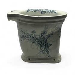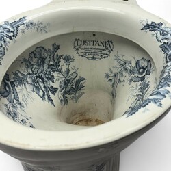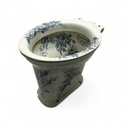 | Omschrijving | Een antieke aardewerken toiletpot, met blauw transfere floraal decor. Gemerkt Lusitania H.Dam-Beuckeleers appareils sanitaires. |
