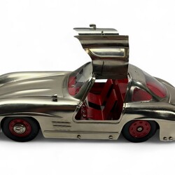 | Omschrijving | Märklin modelauto: aluminiumkleurige Mercedes 300 SL, bouwjaar 1993, gemerkt en uitvoering Märklin, in originele verpakkingsdoos |