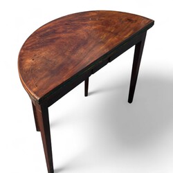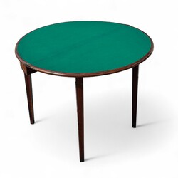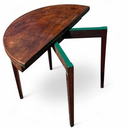 | Omschrijving | Mahonie halvemaanvormig speeltafeltje, binnenin met groen vilten blad, 19e eeuw |