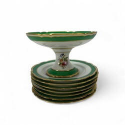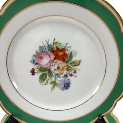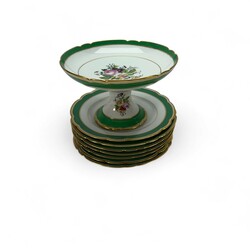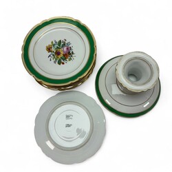 | Omschrijving | Lot van zeven porseleinen borden en een Tazza, allen met bloemdecor, gemerkt Limoges |